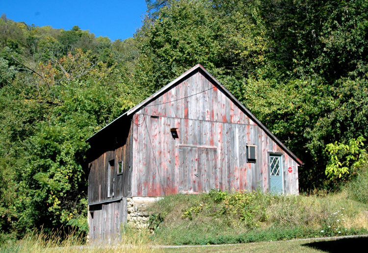 History The Zimmerman family were first people to settle on property in 1883. A circa 1900 photo of property from Pikes Peak blufftop shows all three buildings, an orchard above the house and fields to the south. There was also a blufftop field (sold 1972) that was serviced by steep bluff road, now referred to as Bluff Hiking Road. It is likely two-story barn was first building built, often the case with early farms. Also, barn construction is mostly hand hewn beams while house and beehouse are all sawed lumber. Barn is small basic barn that probably housed couple of horses and maybe couple of cows and other livestock. The Zimmerman family may or may not have lived in barn while house was being built. The southeast corner of upper barn was framed in and covered with lathe and plaster. They were beekeepers and probably made part of their livelihood from honeybees. Beehouse is unique and very large (16’ x 16’) with spaces for 27 hives. There was also a large cupola to help ventilate the heat in the summer. The beehouse had an internal chimney which was used to “smoke” the bees and make it easier to service them. The house is two-story frame house with a stone foundation. In the basement is a cistern for water and a root cellar.
